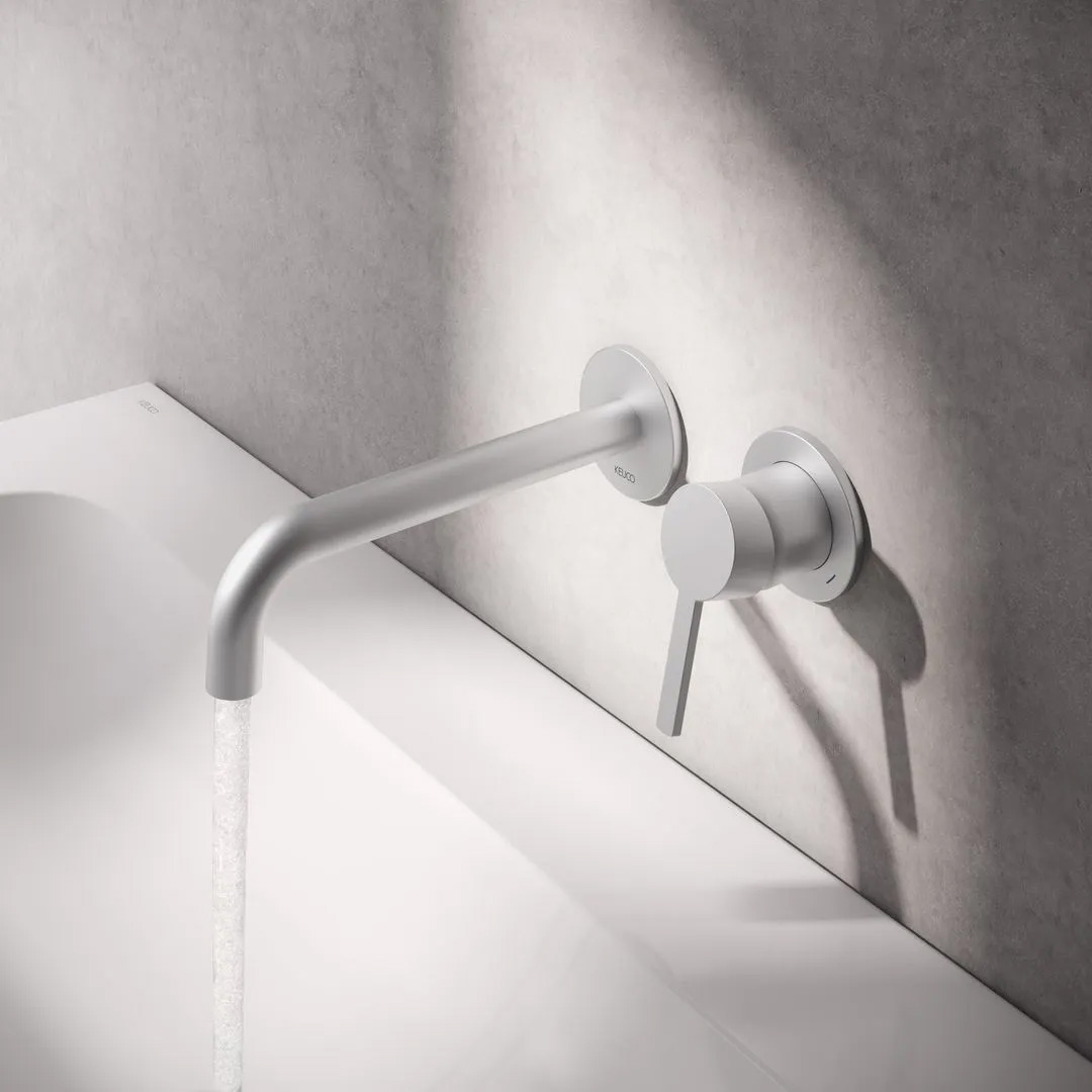 Die KEUCO Serie PLAN zeichnet sich durch das vielseitige und umfangreiche Sortiment aus.  Die PLAN blue Armaturen sind mit ihrem universellen Design in zahlreichen Badeinrichtungen einsetzbar und fügen sich in die stilsichere Raumarchitektur ein. Mit der PLAN blue Wandauslaufarmatur für den Waschtisch wird das Armaturen-Sortiment um eine designstarke Komponente erweitert. Aus massivem Edelstahl oder aus Messing mit Oberflächen in Chrom, Aluminium-finish und Schwarz matt sind die Gestaltungsmöglichkeiten, besonders in Kombination mit den vielen Accessoires der Serie PLAN, groß.